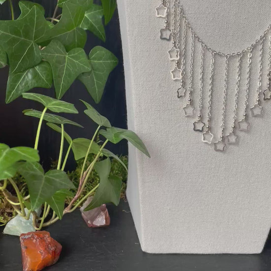 The small silver stars on this beauty of a necklace are first sifted out of one of the many streams found running through The Mystical Forest. Using a sifting pan, the small silver stars are taken straight from the bottom of the stream and separated from any rocks/gems and natural matter. Then, they are cleaned and examined for any defects. But oftentimes, they’re perfect! They’re then attached to silver chain which was formed from the silver siphoned from a silver-filled willow tree, readily found at the edges of The Mystical Forest. And INTERESTINGLY, all of this silver has been found to be exactly identical in chemical composition to .925 sterling silver. Remarkable!✨🍄