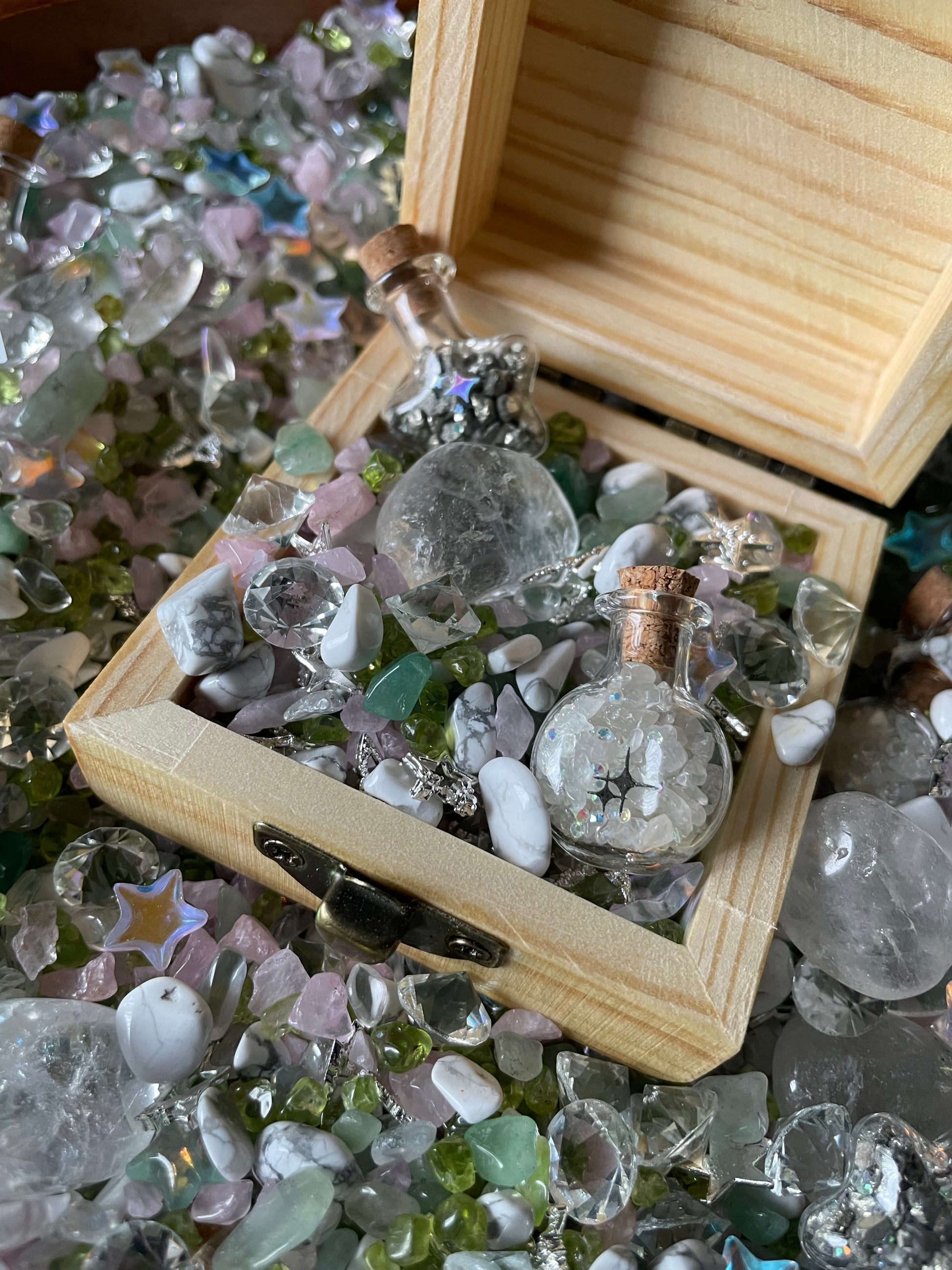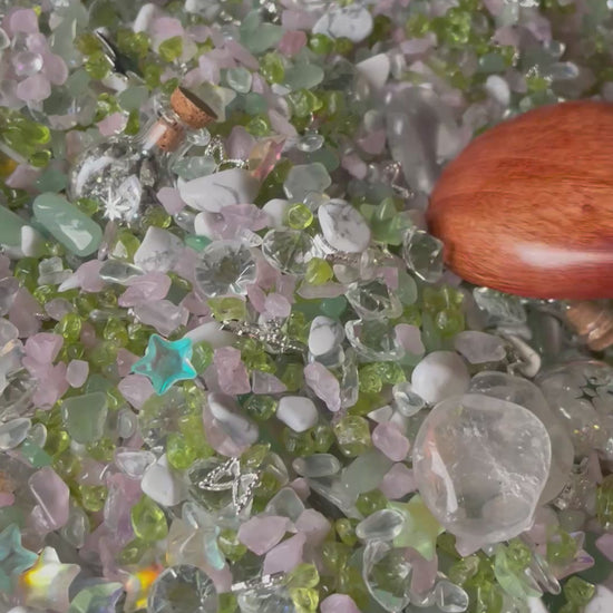 Magical Mini Fairy Forest Crystal Confetti With Wooden Box, Quartz Point, And Selenite Stick
